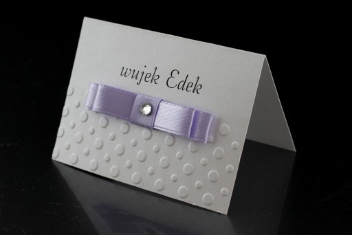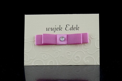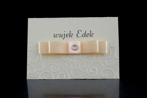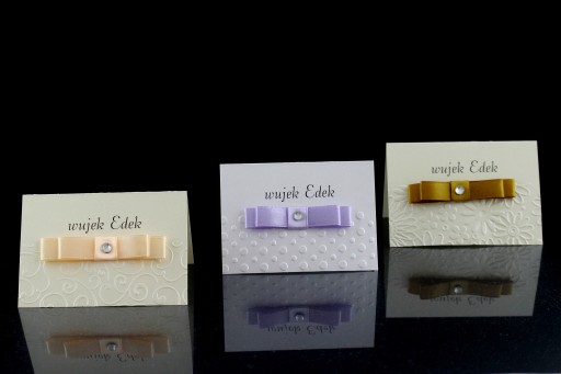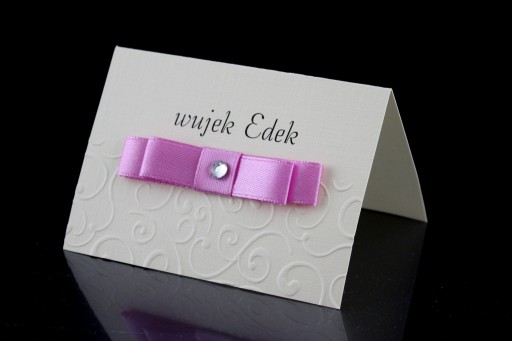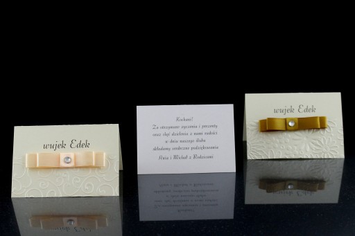 Na jednej stronie umieszczone jak imię i nazwisko gościa, zaś z drugiej krótkie podziękowanie za przybycie.