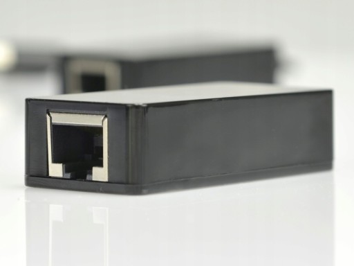 - Wykorzystuje standardowy kabel sieciowy Cat 5, 5e lub 6 (UTP, STP lub SFP) z wtyczkami RJ45