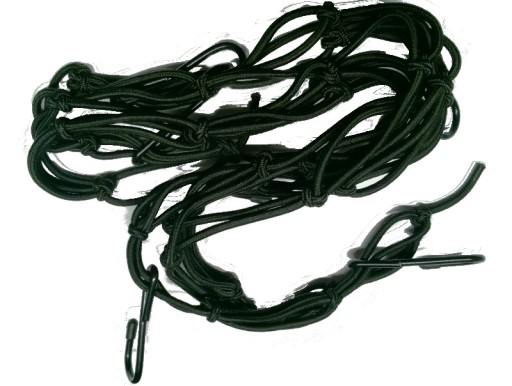 Uniwersalna siatka na bagaż motocyklowy wykonana z elastycznych i trwałych sznurów gumowych. Posiada sześć stalowych haków pozwalających na pewne mocowanie wykonanych z hartowanej stali zakończonych silikonowymi wkładkami zabezpieczającymi plastiki przed porysowaniem.