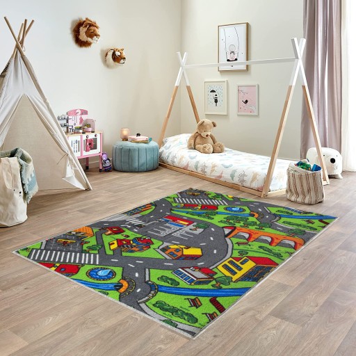 Wspaniały dywan do zabawy samochodami dla chłopców.
