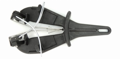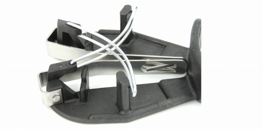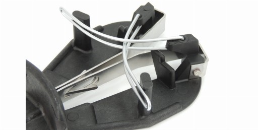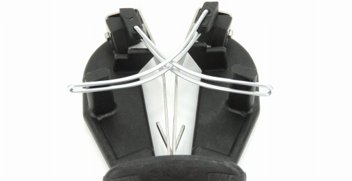 Z ostrzałką w komplecie dołączono nierdzewny uchwyt umożliwiający przymocowanie ostrzałki do blatu lub ściany.