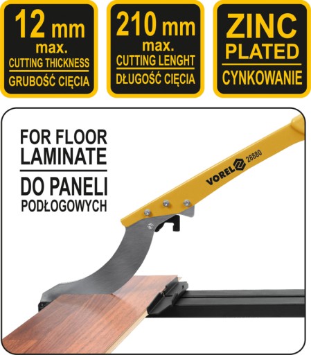 Gilotyna do przecinania podłogowych i ściennych paneli laminowanych. Wykonana z grubej blachy stalowej. Konstrukcja wyjątkowo sztywna i odporna na odkształcenia, powodowane silnym naciskiem długiego ramienia. Gwarantuje to łatwość i precyzję cięcia.