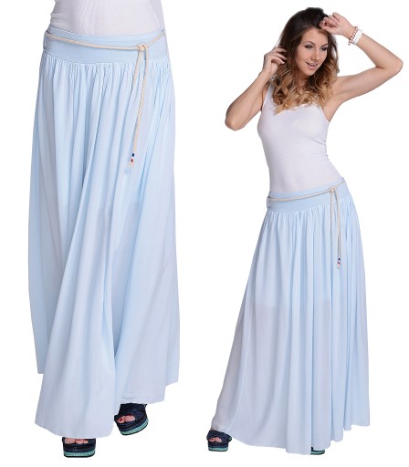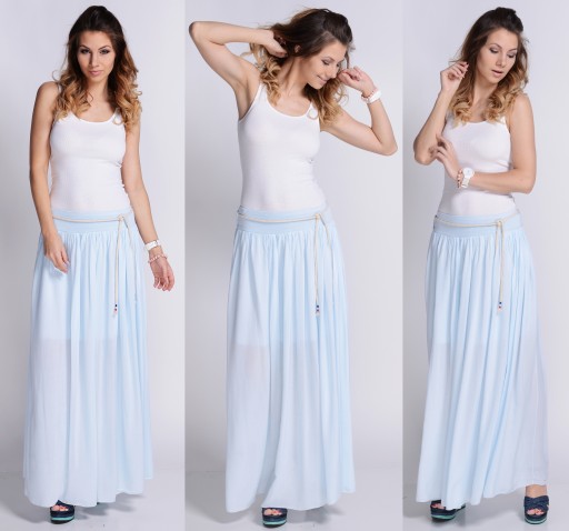 MAXI LEKKA DŁUGA SPÓDNICA ROZKLOSZOWANA błękit