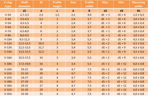 Pierścienie uszczelniające typu V-ring są zaliczane do uszczelnień wałków obrotowych i w odróżnieniu do pierścieni typu simmering, uszczelniają w kierunku osiowym na powierzchni czołowej gniazda (np. łożyska - element stały) same zaś obracają się z wałkiem. Zbudowane są z pierścieniowego korpusu gumowego, niekiedy wzmocnionego pierścieniem metalowym, który mocuje pierścień na wałku oraz wargi uszczelniającej obracającej się w płaszczyźnie pionowej do osi wałka. Wstępny zacisk osiowy, pochodzący z napięcia odpowiednio ukształtowanej wargi gumowej, powoduje występowanie nacisków stykowych.