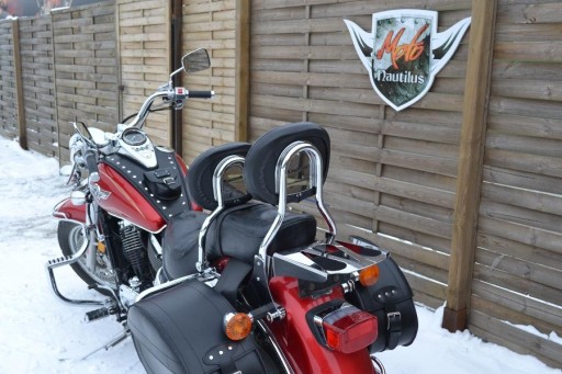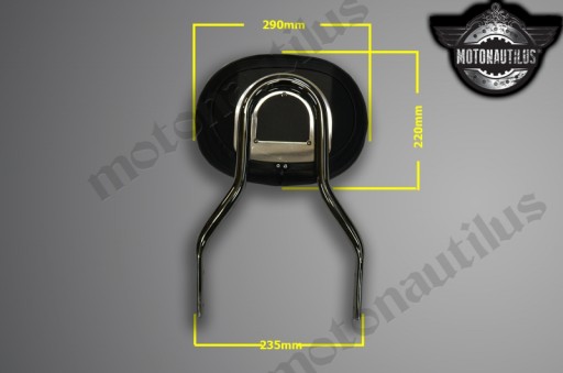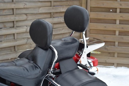 - Poduszka/Oparcie wykonane ze skóry ekologicznej, której kolor i faktura zbieżne są z oryginalną tapicerką motocykla. Aby uzyskać najwyższy komfort podróżowania poduszka została wyprofilowana ergonomicznie, a bazą profilowania jest blacha stalowa o grubości 2mm, będąca jednocześnie tyłem poduszki
