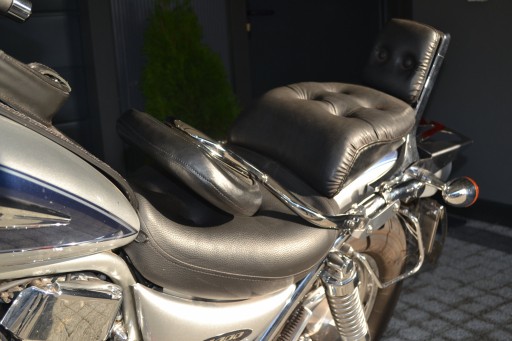 - Poduszka/Oparcie wykonane ze skóry ekologicznej, której kolor i faktura zbieżne są z oryginalną tapicerką motocykla. Aby uzyskać najwyższy komfort podróżowania poduszka została wyprofilowana ergonomicznie, a bazą profilowania jest blacha stalowa o grubości 2mm, będąca jednocześnie tyłem poduszki