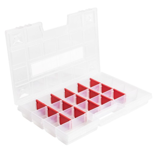 Organizery z serii NorT wyróżnia transparentna powierzchnia, umożliwiająca przejrzyste i dokładne sortowanie rozmaitych drobiazgów. Zawartość jest jeszcze lepiej widoczna. Rozmiar i ilość przegródek można regulować, a przechowywane przedmioty nie mieszają się ze sobą. Dzięki solidnej rączce organizer można bez trudu przenosić.