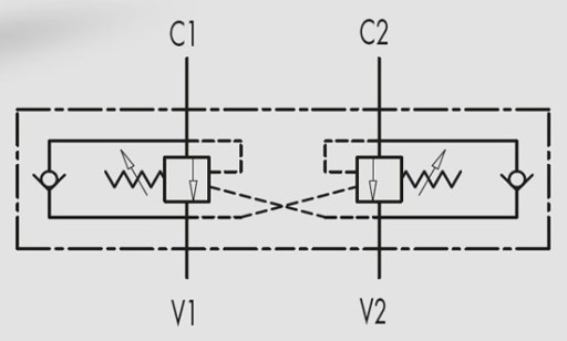 Przepływ jest swobodny w jednym kierunku, natomiast w drugim jest kontrolowany ciśnieniem sterującym.
