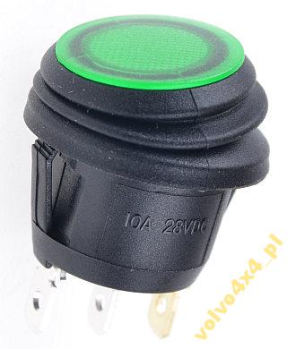 Włącznik zielony z podświetleniem LED - na pozostałych naszych aukcjach dostępne są tego typu włączniki z podświetleniem w innym kolorze lub bez oraz w wersji z dwoma parami styków.
