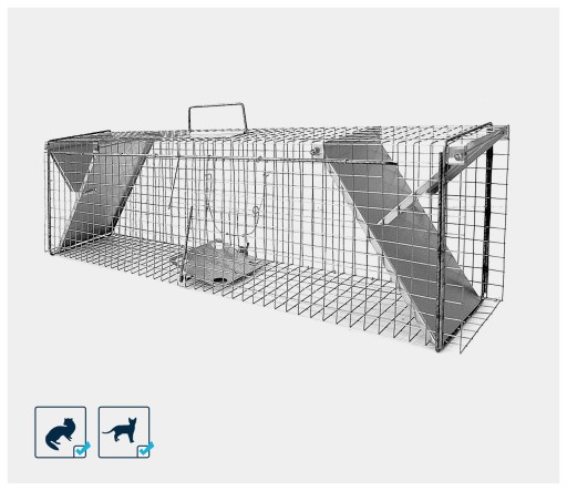 - Stalowa pułapka na kuny, koty, łasice, norki o wymiarach 102x17x20 cm