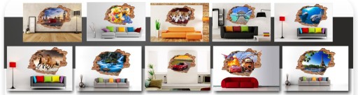 Przedmiotem aukcji są kolorowe naklejki z efektem 3D - na ścianę lub sufit.