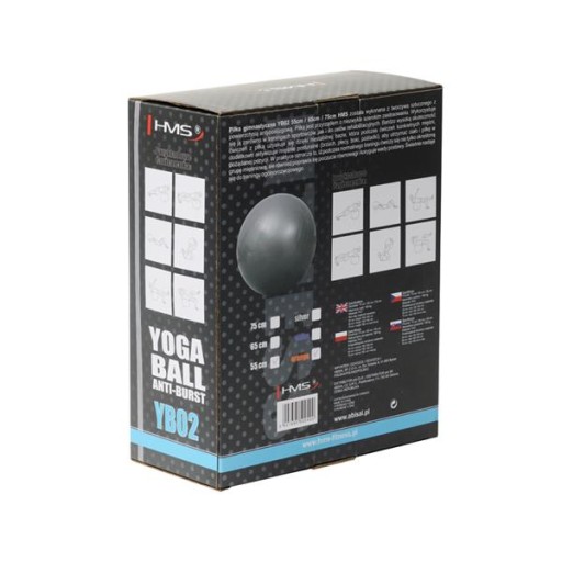 YB02 HMS ANTI-BURST to wytrzymała piłka gimnastyczna wykonana ze specjalnej gumy w technologii Anti-burst, dzięki której w razie pęknięcia, piłka stopniowo traci powietrze, chroniąc ćwiczącego przed nagłym upadkiem.