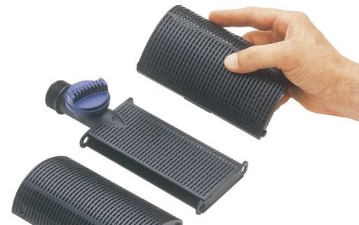 Łatwe do demontażu skrzydełka filtrujące można zamontować na adapterach i umieścić na krawędzi stawu.