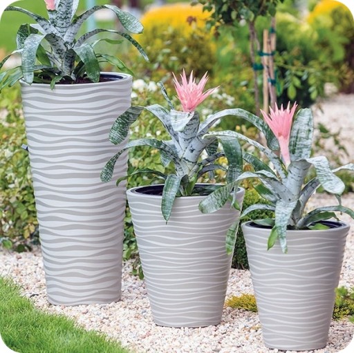 Egzotyczna kolekcja o misternej fakturze nadająca doniczce bardzo fajny efekt 3D. Wykonana z wysokiej jakości tworzywa sztucznego (polietylen) metodą rozdmuchu.Stanowi doskonałe uzupełnienie stylowej dekoracji wnętrz,aranżacji tarasów,werand,ogrodów zimowych,ogródków restauracyjnych,barowych oraz kawiarnianych.W zestawie praktyczny wkład z uchwytami ułatwiającymi wyjmowanie,pozwala on również zmniejszyć ilość ziemi.Doniczki odporne są na działanie warunków atmosferycznych a materiał z którego są wykonane cechuje się odpornością na pęknięcia,stłuczenia oraz złamania,dlatego świetnie nadają się do wnętrz jak i na zewnątrz.Występują w czterech kolorach: biały,szarobeżowy,antracytowy oraz jasnoszary.