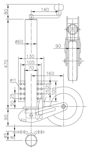 Koło podporowe pomaga w łatwiejszym manewrowaniu przyczepą lub lawetą na placu oraz pomaga w zdejmowaniu i odczepianiu