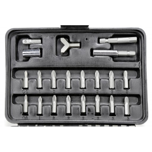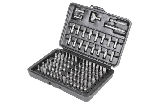 Wysokiej jakości komplet bitów to niezbędne wyposażenie każdego warsztatu oraz garażu. Dzięki odpowiedniemu dobraniu elementów zestawu jest on niezwykle uniwersalny. Zastosowanie odpowiednich materiałów zapewnia wysoką wytrzymałość oraz trwałość. Całość zamknięta w walizce z tworzywa sztucznego.