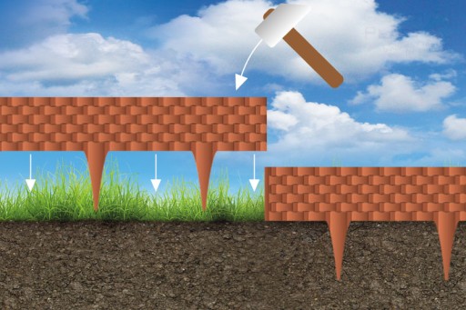 Montaż Palisady jest bardzo prosty i należy go wykonać łącząc ze sobą poszczególne elementy palisady wsuwając je w specjalnie zaprojektowany zamek. Następnie młotkiem wbijamy palisadę w ziemię.