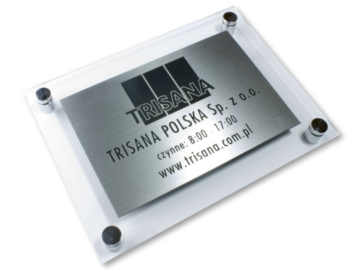 Do szyldu dołączone są 4 metalowe dystanse montażowe, dzięki którym tablica nie przylega do ściany.