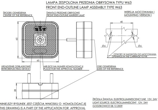 - Funkcje: światło obrysowe przednie, urządzenie odblaskowe