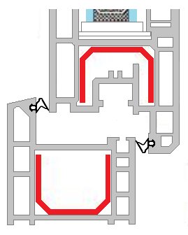 W starszych oknach można spotkać się z montażem uszczelki na narożach na tzw. "owijkę", czyli uszczelka na narożu nie jest przycinana pod kątem 45 stopni i trwale łączona ze sobą , tylko zgięta jest pod kątem 90 stopni i wciśnięta w rowek montażowy. W starszych oknach był to prawidłowy montaż uszczelki. W nowych oknach uszczelki na narożach przycina się pod kątem 45 stopni i trwale ze sobą łączy ( do tego celu używamy kleju Faster ). Nowy sposób montażu wprowadzono w celu lepszego uszczelnienia okna na narożach, ponieważ montując na narożu okna zgiętą uszczelkę ( stary sposób montażu) powoduje to jej zgrubienie ( uszczelka traci swoją elastyczność) i szybko w tym miejscu okno zaczyna przewiewać. Drugim minusem starego sposobu montażu jest to, że zgięta pod kątem 90 stopni uszczelka nie trzyma się dobrze w rowku montażowym i często z niego wypada powodując rozszczelnienie okno.