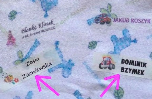 Metki te idealnie nadają się do znakowania rzeczy, które można prasować (najlepiej sprawdzają się na bawełnianych i naturalnych tkaninach) np: