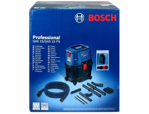 Profesionalny odkurzacz GAS 15 PS firmy Bosch to kompaktowy odkurzacz uniwersalny, który z powodzeniem można stosować zarówno w warsztacie, jak i na budowie. Dzięki wydajnej turbinie o mocy 1 100 W urządzenie osiąga ciśnienie ssania 220 mbar, co umożliwia skuteczną pracę w większości typowych zastosowań. Budowa odkurzacza pozwala używać go do pracy na mokro i na sucho.