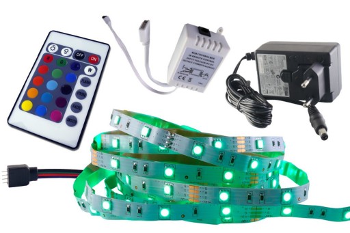 ZESTAW Taśma LED RGB 5050 EPISTAR 3-chip 30LED/m SMD IP20 7,2 W/m elastyczna kolorowa 2m