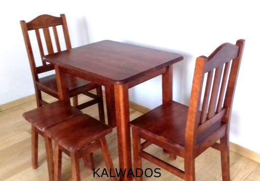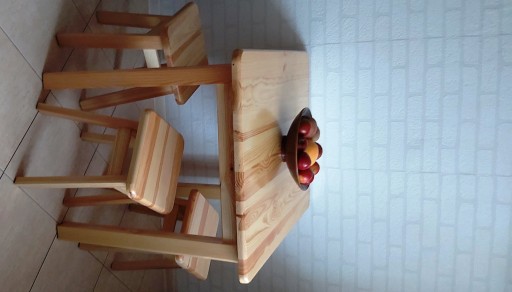 - Solidny drewniany stół, wykonany z wysokiej jakości drewna sosnowego.