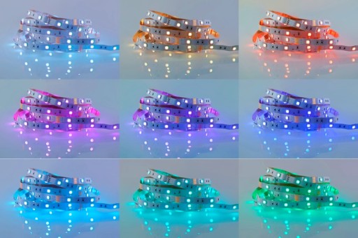 LED RGB kolorowy może świecić każdą barwą - czerwonym, niebieskim, zielonym, mieszanką tych barw oraz białym. Kolor biały w taśmach RGB uzyskujemy mieszając barwę czerwoną, zieloną i niebieską wciskając na pilocie przycisk W lub biały. Dzięki możliwości uzyskania każdej barwy, można tworzyć niesamowite iluminacje dodające charakteru każdemu pomieszczeniu.