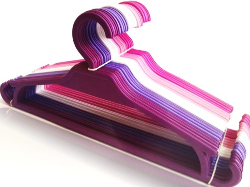 PRZEDMIOTEM SPRZEDAŻY JEST KOMPLET WIESZAKÓW DZIECIĘCYCH (20 SZT.) W PRZEPIĘKNYCH ODCIENIACH RÓŻU FIOLETU I BIELI