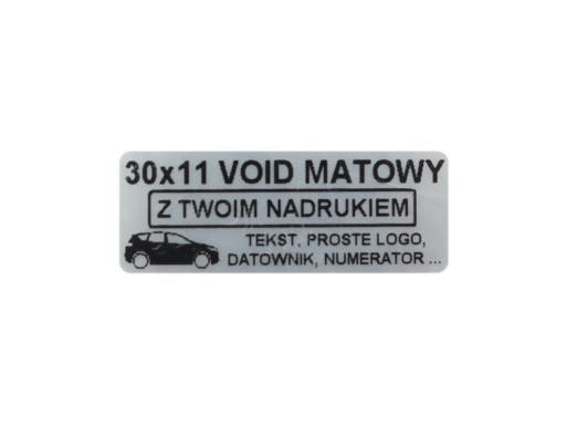 Oferujemy wykonanie 500 sztuk plomb gwarancyjnych w rozmiarze 30x11mm, z srebrnej matowej folii VOID.