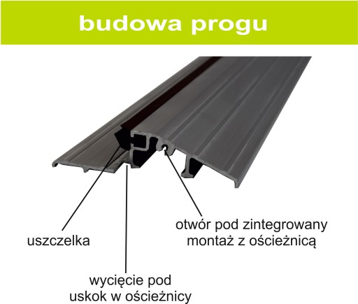 Łatwy i szybki montaż. Wystarczy dociąć próg tak aby pasował kształem do ościeżnicy. (Klient docina we własnym zakresie).