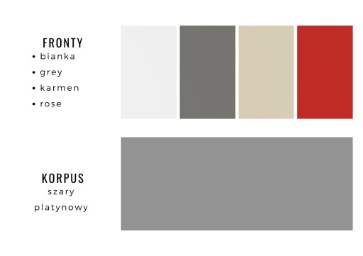 Front: płyta MDF 16 mm połysk / obrzeże ABS