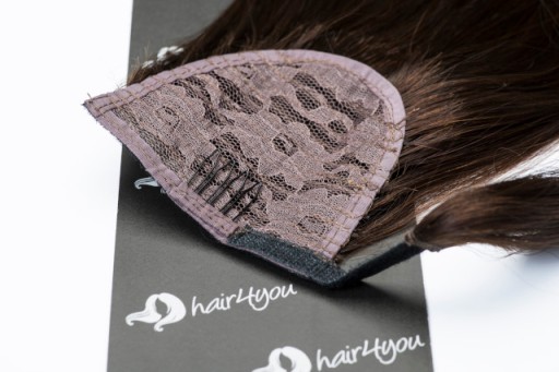 Tak zamocowaną dopinkę oplatamy wokół gumki, tym samym zapinając rzep, a pasmo dodatkowych włosów oplatamy dookoła kończąc tym samym fryzurę.