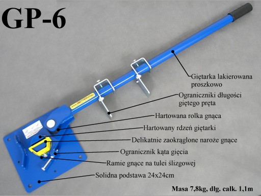 - Rączka giętarki zbudowana jest na tulei ślizgowej co daje trwale i sztywne rozwiązanie