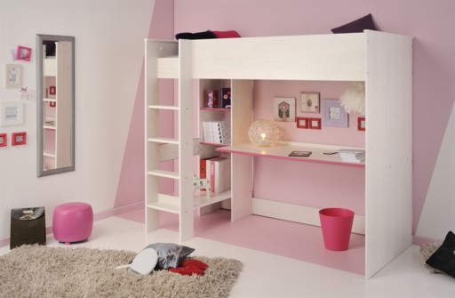 Smoozy to kolekcja, która jest nowością w ofercie francuskiego producenta Parisot. Oprócz mebli z kolekcji z możliwością osobnego zakupu oraz łóżka multifunkcyjnego znalazła się w niej również atrakcyjne łóżko piętrowe. Łóżko piętrowe jest praktycznym i funkcjonalnym połączeniem wygodnego łóżka oraz znajdującego się na dolnym poziomie biurka. Stanowi idealne uatrakcyjnienie wnętrza pokoju dziecka oraz sprawi, że spędzanie w nim czasu będzie dla dziecka przyjemnością. Dzięki zastosowaniu łóżka piętrowego w pokoju dziecka zaoszczędzimy cenną przestrzeń. Smoozy to łóżko piętrowe wykonane w modnym biało-różowym połączeniu kolorystycznym w związku z czym przeznaczone jest do pokoju dziewcząt (Posiadamy również wersję kolorystyczną biało - niebieską przeznaczoną dla chłopców). Łóżko piętrowe Smoozy jest gwarancją solidnego wykonania i zaspokojenia potrzeb i upodobań dziecka.