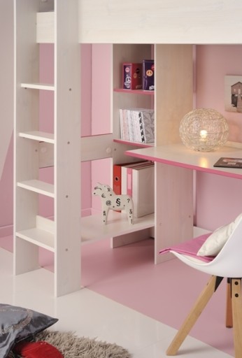 Smoozy to kolekcja, która jest nowością w ofercie francuskiego producenta Parisot. Oprócz mebli z kolekcji z możliwością osobnego zakupu oraz łóżka multifunkcyjnego znalazła się w niej również atrakcyjne łóżko piętrowe. Łóżko piętrowe jest praktycznym i funkcjonalnym połączeniem wygodnego łóżka oraz znajdującego się na dolnym poziomie biurka. Stanowi idealne uatrakcyjnienie wnętrza pokoju dziecka oraz sprawi, że spędzanie w nim czasu będzie dla dziecka przyjemnością. Dzięki zastosowaniu łóżka piętrowego w pokoju dziecka zaoszczędzimy cenną przestrzeń. Smoozy to łóżko piętrowe wykonane w modnym biało-różowym połączeniu kolorystycznym w związku z czym przeznaczone jest do pokoju dziewcząt (Posiadamy również wersję kolorystyczną biało - niebieską przeznaczoną dla chłopców). Łóżko piętrowe Smoozy jest gwarancją solidnego wykonania i zaspokojenia potrzeb i upodobań dziecka.
