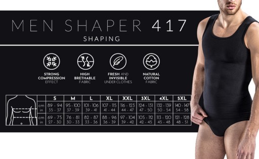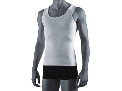 Męska podkoszulka wyszczuplająca i modelująca wykonana jest z elastycznej bawełny, posiada wbudowany szeroki uciskowy pas w okolicach talii, który wyszczupla i modeluje sylwetkę. Maksymalny komfort noszenia zapewnia bezszwowa technologia produkcji pozwalająca zachować anatomiczne kształty ciała i zastosowane w produkcji naturalne włókna. Podkoszulka wykończona jest podwójnym pasem elastycznym, który zapobiega rolowaniu się podczas noszenia, nie powodując ograniczenia ruchów. Dyskretnie nie odznacza się pod ubraniem. SKŁAD: