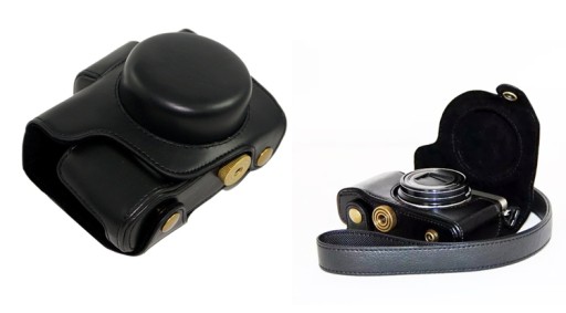 Skórzane etui z osłoną obiektywu, które chronią aparat i obiektyw, pozwalając jednocześnie na szybkie robienie zdjęć.