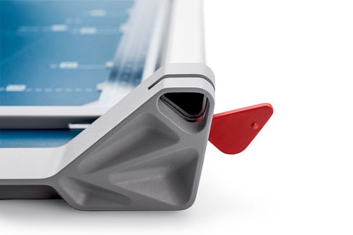 - Praktyczne linie formatu z podziałką mm wzdłuż linii cięcia na blacie ułatwiają ułożenie ciętego materiału