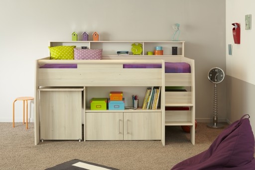W klasycznej kolekcji mebli młodzieżowych Kurt nie zabrakło również praktycznego łóżka multifunkcyjnego, które jest nowością w ofercie francuskiego producenta Parisot. Łóżko multifunkcyjne to praktyczne i funkcjonalne połączenie wszystkiego co niezbędne dziecku do funkcjonowania w swoim pokoju a jednocześnie uatrakcyjnienie jego przestrzeni. Zaletą łóżka multifunkcyjnego jest możliwość zagospodarowania pokoju o niewielkich rozmiarach. Kurt to łóżko multifunkcyjne wykonane w klasycznej i delikatnej kolorystyce buku. Ten multifunkcyjny mebel oprócz łóżka wyposażony jest w szereg półek umożliwiających przechowywanie oraz biurko znajdujące się na niższym poziomie. Łóżko multifunkcyjne Kurt jest gwarancją solidnego wykonania i zaspokojenia potrzeb i upodobań dziecka.
