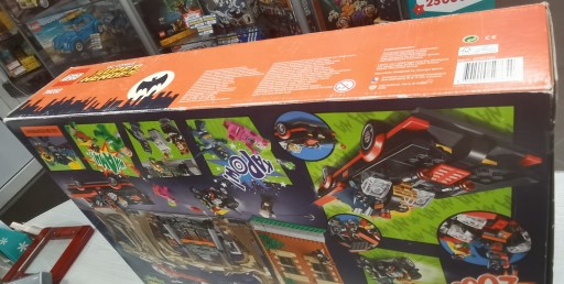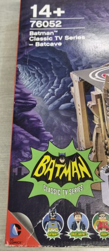 Batman™ i Robin próbują pozbyć się intruzów z Jaskini Batmana. Czy potrafisz im pomóc? Do twojej dyspozycji jest laboratorium z Batkomputerem, a także Batmobil uzbrojony w wyrzutnię klocków, Batkopter z wystrzeliwanymi rakietami oraz Batmotor. Ten wyjątkowy model wzorowany jest na klasycznym serialu z lat 60. Znajdziesz w nim fragment rezydencji Wayne'ów ze ścianą, po której można się wspinać, a także gabinet Bruce'a Wayne'a z kultowym Bat-telefonem oraz fałszywym regałem, który odsuwa się i odsłania tajne wejście do Jaskini Batmana. Zanim zjedziesz w dół po Bat-słupie, zmień Bruce'a Wayne'a i Dicka Graysona w Batmana i Robina (zestaw zawiera osobne minifigurki). W zestawie 9 minifigurek: Batman™, Robin, Bruce Wayne, Dick Grayson, Alfred Pennyworth, Joker, Kobieta-Kot, Człowiek-Zagadka i Pingwin.