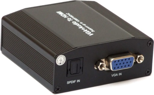 - przetwarza sygnał komputerowy VGA video oraz audio R/L lub SPDIF na sygnał HDMI