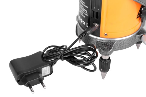 Niwelator zasilany jest zarówno z baterii, jak i z dołączonego do zestawu zasilacza. Włącznik jest trwały, bezpieczny i nie pozwala na przypadkowe wyłączenie urządzenia.
