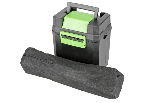 Trwała konstrukcja sprawia że sprzęt jest jednocześnie praktyczny i poręczny. Bardzo prosta obsługa i widoczny, wyraźny promień lasera pozwala na wygodną i bezpieczną pracę z urządzeniem. Dołączony statyw zapewnia jeszcze większą możliwość regulacji położenia niwelatora. Możliwość stosowania urządzenia wewnątrz lub na zewnątrz. Obudowa urządzenia wykonana została z niezwykle trwałego tworzywa sztucznego odpornego na uszkodzenia mechaniczne i zużycie.