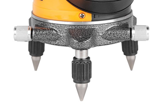 Solidna podstawa z wbudowaną poziomicą oraz regulowane stopki pozwalają na używanie urządzenia w trudnych warunkach. Wygodny uchwyt pozwala na łatwe przenoszenie niwelatora. Niwelator zasilany jest zarówno z baterii, jak i z dołączonego do zestawu zasilacza. Włącznik jest trwały, bezpieczny i nie pozwala na przypadkowe wyłączenie urządzenia.