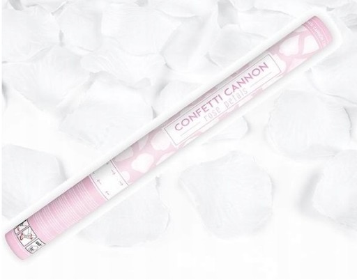 Tuba Strzelająca Wystrzałowa Konfetti Płatki Róż Białe Ślub Wesele 60cm