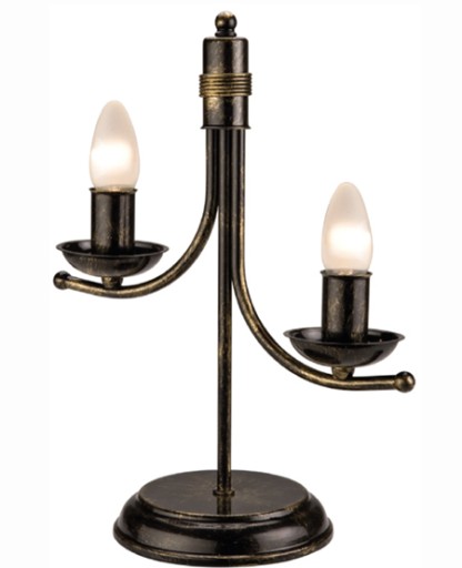 Świecznikowa lampka nocna, stołowa, 2-płomienna wykonana ze stali w kolorze czarny połysk, lekko przecierany na złoty.