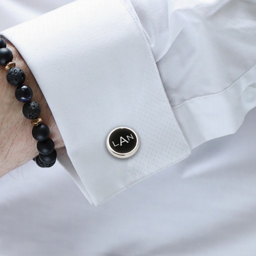 Eleganckie spinki do mankietów z Twoim grawerem na onyksie, wykonane ze srebra próby 925 prosto od producenta wykonane na zamówienie.