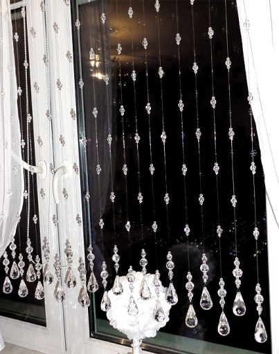 Zawieszka wykonana z akrylowych kyształków. Kryształki nawleczone są na transparentną żyłkę. Cudownie rozpraszają światło, dodająć wnętrzu elegancji i stylu.